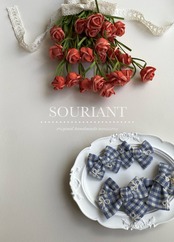 ꕤ︎︎ embroidery × check blue ribbon